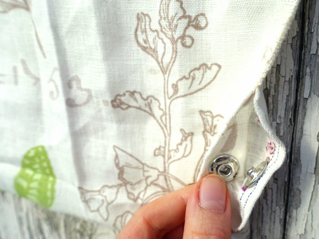 Als besonderen Effekt und Zusatznutzen nähte ich eine Öffnung ein, die mit einem Druckknopf geschlossen werden kann: Hier lässt sich ein kleiner Duftbeutel hinein stecken bzw. entnehmen. Das Duftsäckchen habe ich mit Lavendel aus dem eigenen Garten gefüllt. Auf diese Weise parfümiert der Holzbügel das darauf hängende Kleidungsstück: Sehr clever, finde ich.
