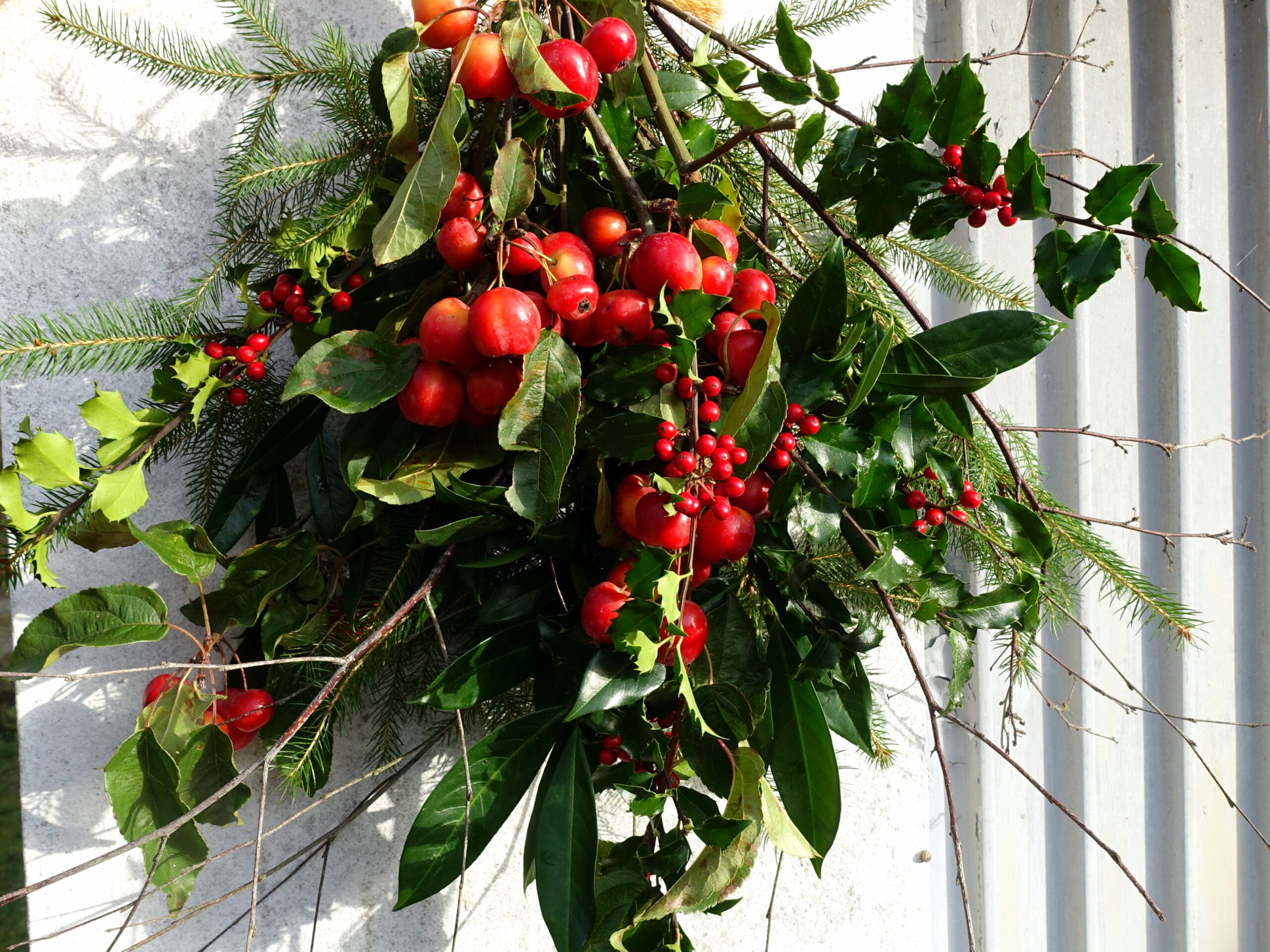Strauß aus Beerenzweigen und Heckenschnitt binden